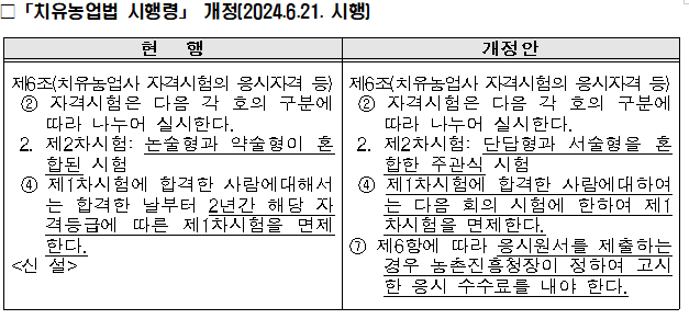 1. 치유농업사 제2차 시험의 형태와 출제수가 변경됩니다.